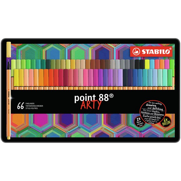 Fineliner Point 88 Arty 66-pack i metalletui STABILO