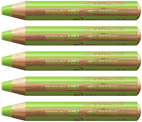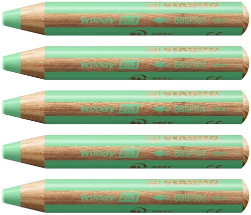 Färgpenna, vattenfärg och vaxkrita – STABILO woody 3 i 1-5-pack – pastellgrön