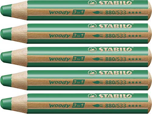 Färgpennor Stabilo Woody Mörkgrön 3 i 1 (5 antal)