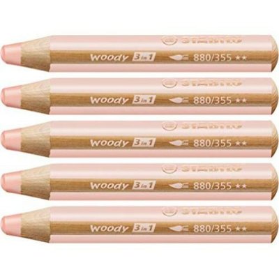 Färgpenna, vattenfärg och vaxkrita – STABILO woody 3 i 1–5-pack – pastellröd