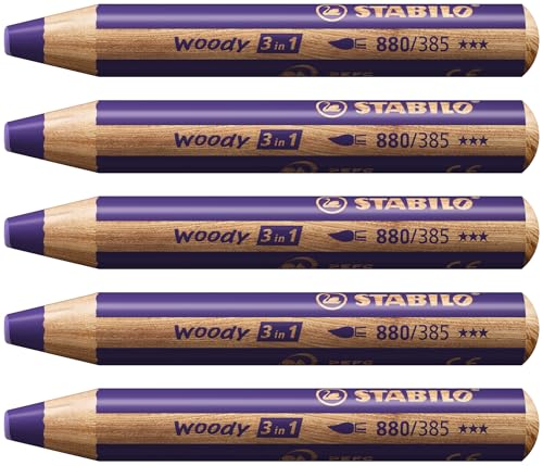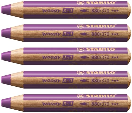 Färgpenna, vattenfärg och vaxkrita – STABILO woody 3 i 1–5-pack – pastelllila