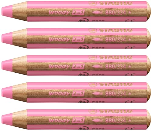 Färgpennor Stabilo Woody Rosa 3 i 1 (5 antal)
