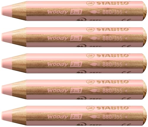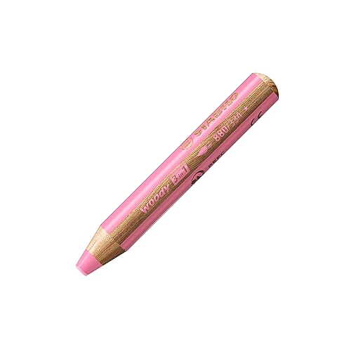 Färgpenna, vattenfärg och vaxkrita – STABILO Woody 3 i 1 – 5-pack – pastellrosa