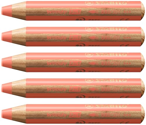 STABILO Duo färgpenna, vattenfärg och vaxkrita Woody 3 i 1 duo – tvåfärgad stift – 5-pack – vit/aprikos