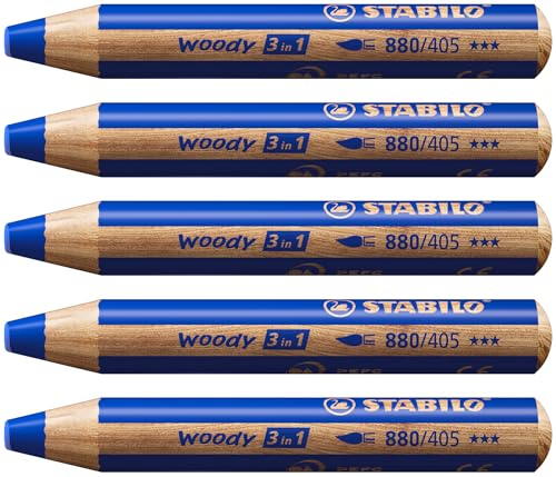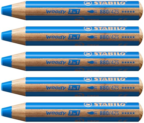 Färgpenna, vattenfärg och vaxkrita – STABILO woody 3 i 1-5-pack – pastellblå