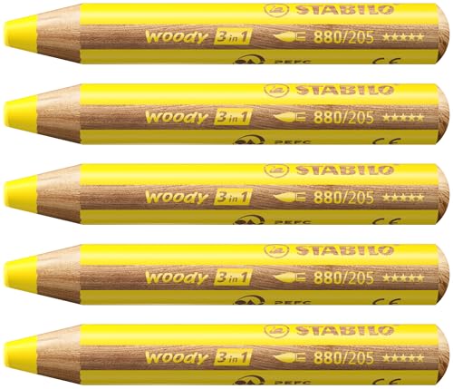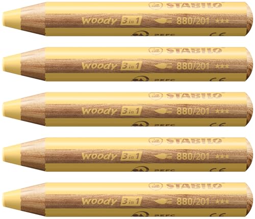 Färgpenna, vattenfärg och vaxkrita – STABILO woody 3 i 1-5-pack – pastellgul