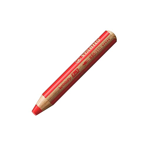 STABILO Duo färgpenna, vattenfärg och vaxkrita Woody 3 i 1 duo – tvåfärgad bly – 5-pack – STABILOröd/mörkgrön
