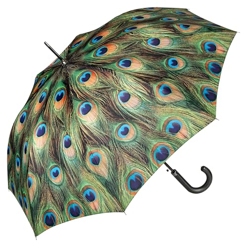 VON LILIENFELD Paraply Automatisk Öppning Stabilt Böjd Rund Krok Automatik Män Kvinnor Klassiskt Lätt Peacock Påfågel