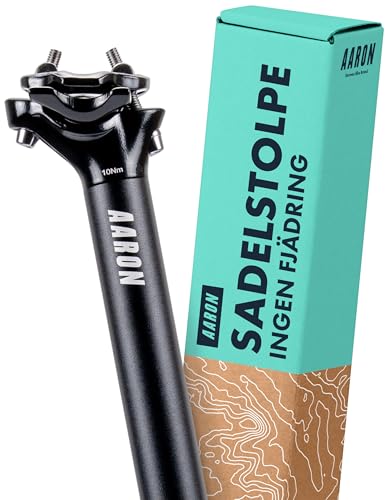 AARON Spring Fjädersadelstöd med diameter på 31,6 mm | Fjädrat aluminiumsadelstöd med 350 mm längd | cykelsadelstolpe fjädrad för elcykel, MTB, trekking stadscykel och mycket mer. Svart