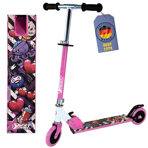 Best Sporting Barnsparkcykel – vikbar sparkcykel från 5 år | Lätt stadscykel med 125 mm hjul, höjdjusterbart styre och ABEC 5 kullager (basmodell: rosa-vit)