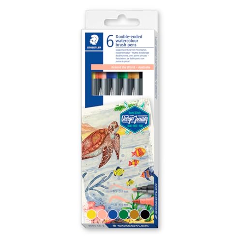 STAEDTLER 3001 C6-2 Design Journey akvarellpenselpennor - Around the World Series - Australien (förpackning med 6 blandade färger)