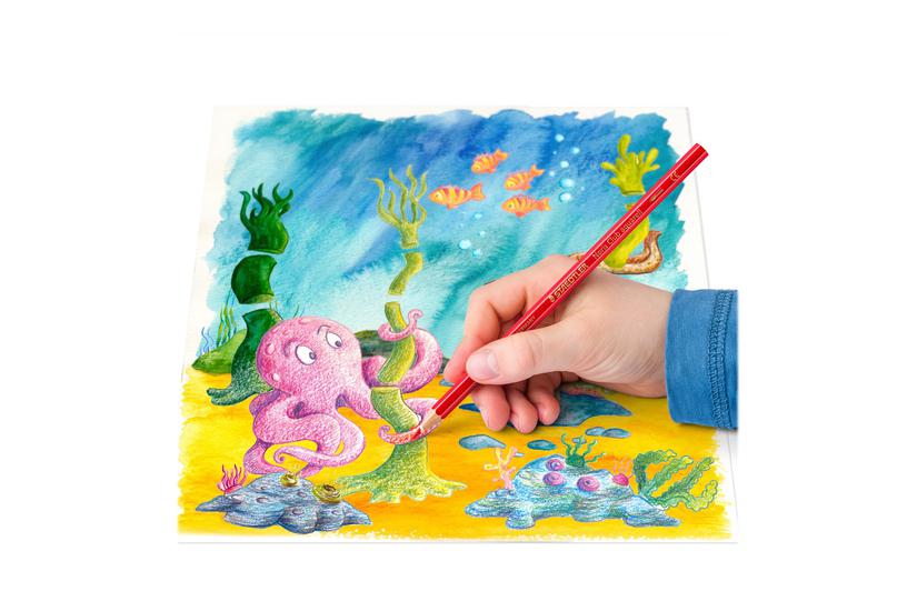 STAEDTLER Noris Club aquarell - vattenfärgspenna - svart, röd, blå, grön, ljusblå, gul, orange, persika, mörkt malvafärgad, pilgrön, vinröd, van dyke-brun (paket om 12)