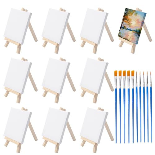 Neikafan Mini canvas och staffli set 10 ministafflier med 25 x 10 cm kanvas, 10 borstar, minidukar med trästaffli för barn och konstnärer för hantverk oljemålning akrylmålning, ritkonst
