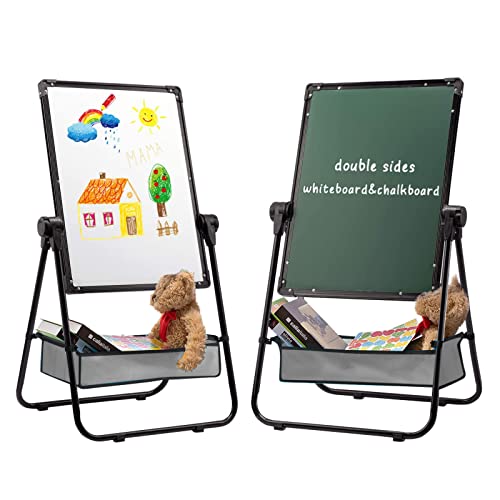 2-i-1 svarttavla för barn, dubbelsidigt staffli för barn, staffli med svarta tavla, whiteboard, förvaringslådor, för barn 3-8 år
