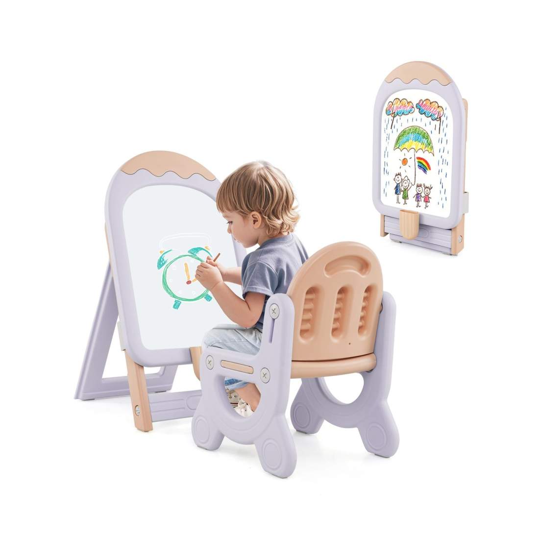 Staffli för barn med stol – 4-i-1 svarta tavla & whiteboard-set