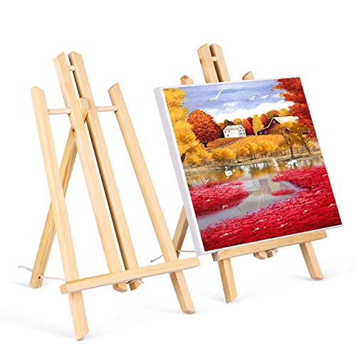 Viesap staffli, 2 stycken trästaffli, 40 cm bildstativ av massivt trä, display/bordsstaffli, vikbart och utrymmesbesparande, dekorativa stativ, staffli barn, för målningar, barnkonst och hantverk.