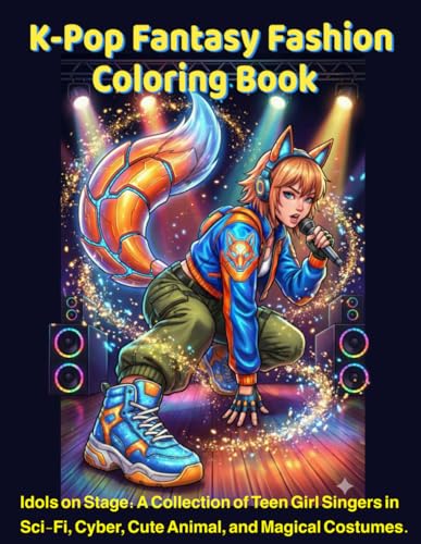 K-Pop Fantasy Fashion Coloring Book: Idols on Stage: A Collection of Teen Girl Singers in Sci-Fi, Cute Animal, and Magical Costumes.