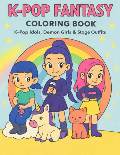 K-Pop Coloring Book with Stylish Idol Outfits & Demons – Korean Pop Fashion, Dark Fantasy Stage Costumes, Aesthetic Coloring Pages for Teens & Adult ... Looks, Playful Demons & Trendy K-Pop Style