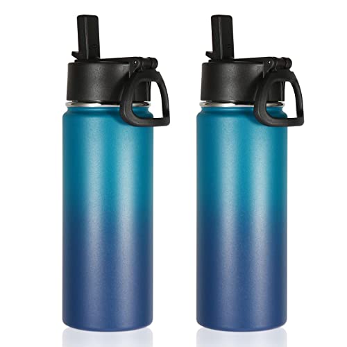 Volhoply Isolerad vattenflaska i rostfritt stål med sugrörslock för barn, 530 ml, 2-pack, bred pip, återanvändbar, dubbla väggar, vakuumisolering, sportflaska, varm/kall dryck (Dark Night, 2 set)