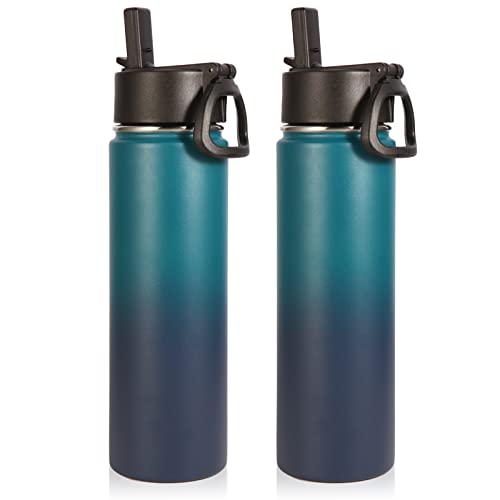 Volhoply 660ml isolerade vattenflaskor med halmlock, flaska i rostfritt stål med handtag, dubbelväggig resevattentermos i metall med bred mun, återanvändbar vattenflaska för skolan (Dark Night,2 set).