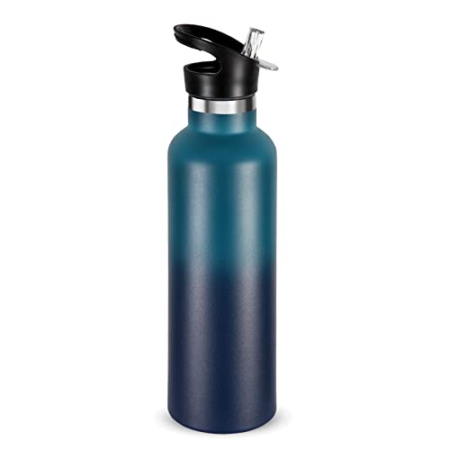 Volhoply 660ml isolerade vattenflaskor med halmlock, sportflaska i rostfritt stål med handtag, dubbelväggig vakuummetall resevattentermos med bred mun, återanvändbar vattenflaska (Dark Night, 1 set).