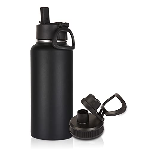 Volhoply 1 liter isolerad vattenflaska med sugrör lock och spout lock, Stainless Steel Sports Water Bottle, Double Wall Vacuum Cups, läckagesäker metallflaska med bred mun för vandring
