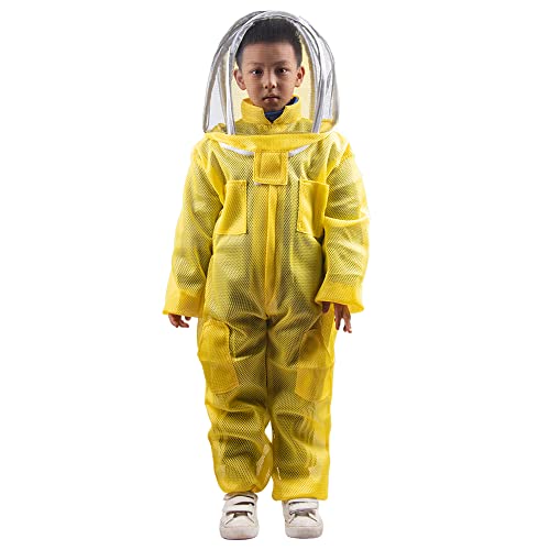 HunterBee Barn helkropp ventilerade biodling dräkter/barnbiodling skyddande bomullsdräkt/självstödjande staket slöja huva 140 cm