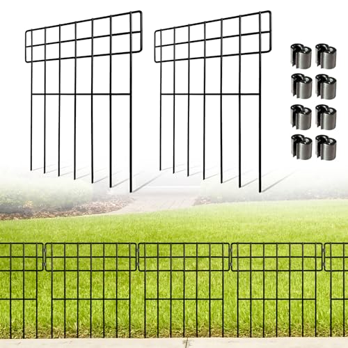 Hanured® 25 stycken dekorativt trädgårdsstaket, 8,2 m(L) x 43 cm (H), plug-in metall inget grävning, hund kaninblockerare staket för gård, med snäpp- och buntband