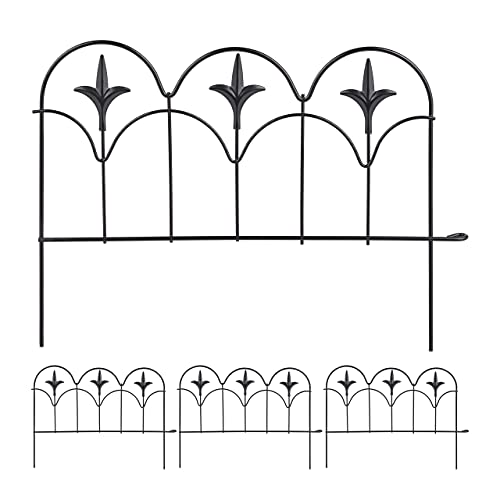 Relaxdays Rabattkant för plugg, 4 staketelement, H x B: 28,5 x 39 cm, metall, staket för trädgård, vintage, svart