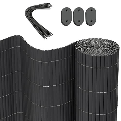 WOLTU PVC-staket skärm, bambulamellstil, ogenomskinlig, integritet, vindskydd, skuggning, staket, skärm för trädgård, balkong, markis, 300 x 100 cm/118 x 39, grå