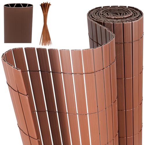 Ribelli® PVC-insynsskyddsmatta, med brygga, extra stabil, insynsskyddsstaket, insynsskydd, staket, balkong, vindskydd (120 x 300 cm, brun)