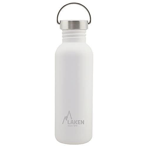 Laken unisex – vuxna mycket robust flaska i rostfritt stål 0,75 l vit med vintage lock, 0,75