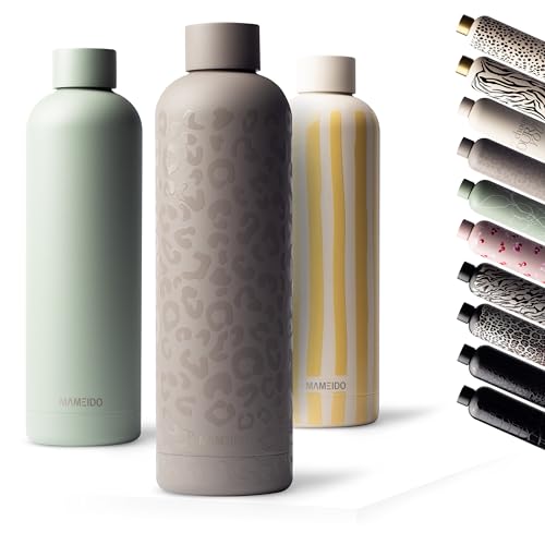 MAMEIDO dricksflaska rostfritt stål 750ml - läckagesäker termosflaska, kolsyra lämplig, BPA-fri, isolerad flaska 12h varm & 24h kall (Sleek Leo, 0,75l)
