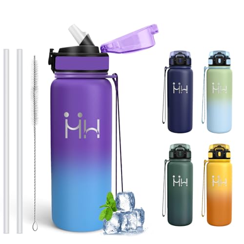 Mujigaga Vattenflaska - 0,75 l - Termisk vattenflaska, BPA-fri, vattenflaska med sugrör, läckagefri, termisk flaska, 18/8 rostfritt stål, dricksflaskor för camping, skola, kontor, resor, yoga