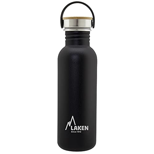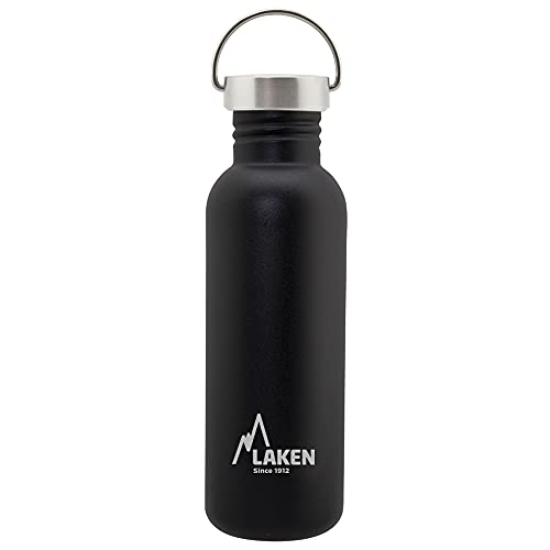 Laken unisex – vuxna mycket robust flaska i rostfritt stål 0,75 l svart med vintage lock, 0,75