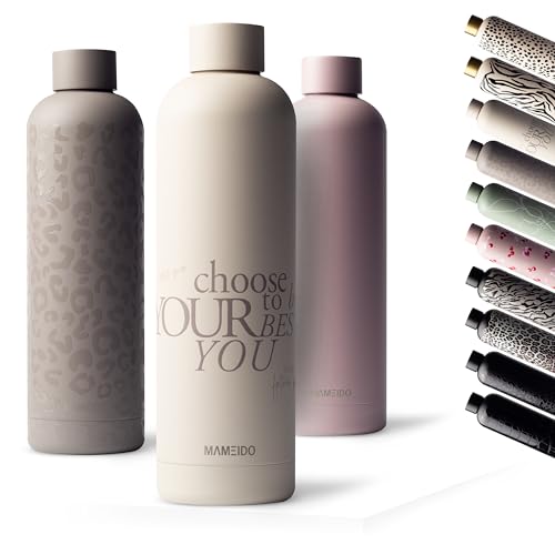 MAMEIDO dricksflaska rostfritt stål 750ml - läckagesäker termosflaska, kolsyra lämplig, BPA-fri, isolerad flaska 12h varm & 24h kall (Striving Me, 0,75l)