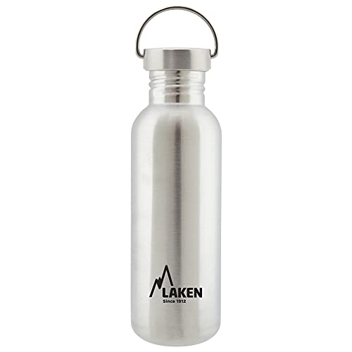 Laken Basic flaska i rostfritt stål, drickflaska bred öppning med skruvlock i rostfritt stål, BPA-fri 0,75 l, silver