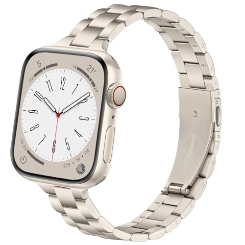 Fullmosa Kompatibel med Apple Watch Armband 41mm 40mm 38mm Kvinnor Män, Metallarmband rostfritt stålband för iwatch SE 3 2 1Series 9 8 7 6 5 4 3 2 1, Stjärnljus