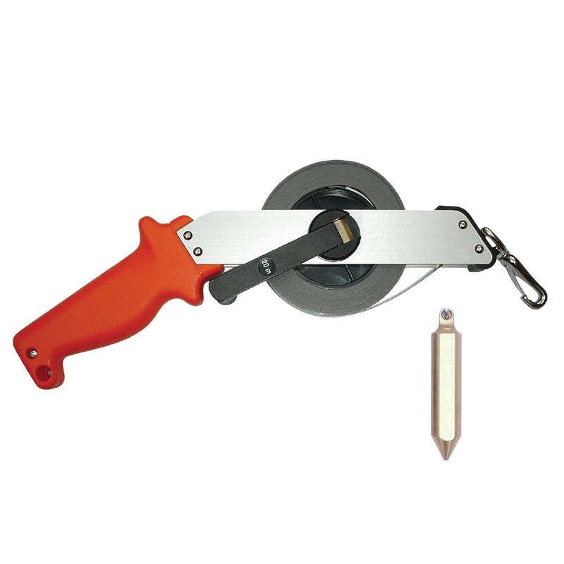 Tankmåttband m/vit stålband & mässingslod, 20 m
