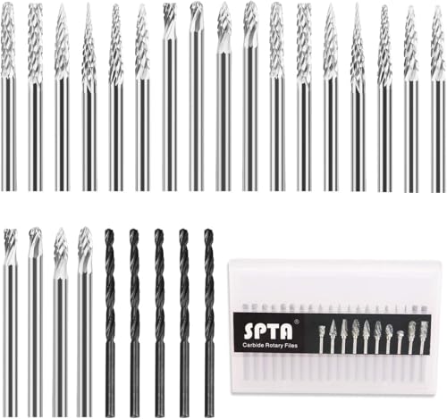 Roterande fräsar, SPTA 20 st volframkarbid fräs roterande stålborr filer diamantvekar/roterande verktyg med 1/8 tum (3 mm) stång/gör-det-själv snickeri, snideri, gravyr, träborrning - CTBD3MIX