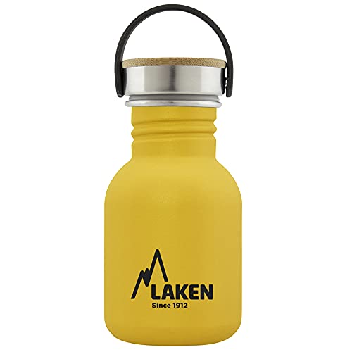 Laken Rostfritt stålflaska med skruvlock stål och bambu och bred mun 350ml, gul