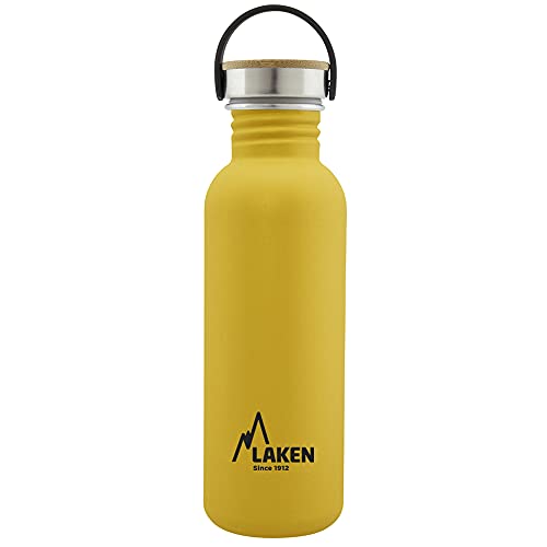 Laken Rostfritt stålflaska med skruvlock stål och bambu och bred mun 750ml, gul