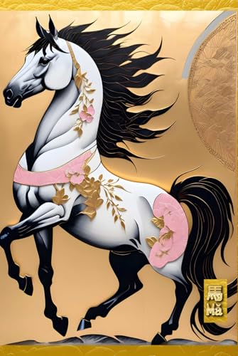 VINTAGE CHINESE ZODIAC SIGN Horse Stallion Mare *JOURNAL NOTEBOOK DIARY SKETCH BOOK* Year of the Horoscope Animal Black Pink Gold Tao Asian Art Women ... SCHOOL SUPPLY֎Homeschool College University