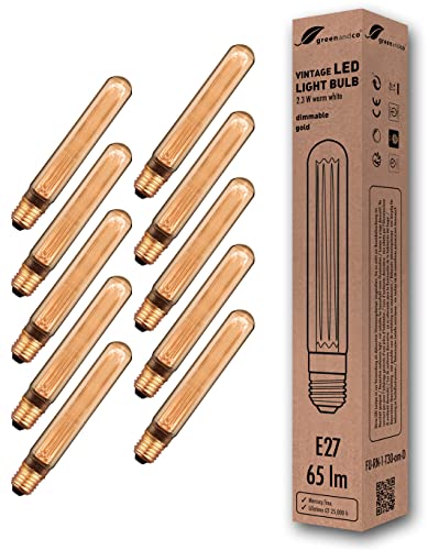 10 st greenandco® dimbar Vintage Design LED-lampa i retrostil för stämningsbelysning E27 T30 Edison-lampa, 2,3W 65lm 1800K extra varmvitt 320° 230V flimmerfri