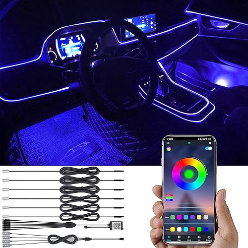 YAOBLUESEA Bil-LED-innerbelysning, 12 V, 6 m, LED 5050 RGB, stämningsbelysning, atmosfär, neon-ljuslist, vattentät LED-slinga med app