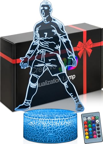 DAHEYMA Fotbollsspelare Siuuuu Celebration 3D Illusion lampa, 16 färger dimbar nattlampa med fjärrkontroll, No.7 portugisisk fotbollsspelare Rum Dekorationer Pojkar Gåvor Stämningsbelysning
