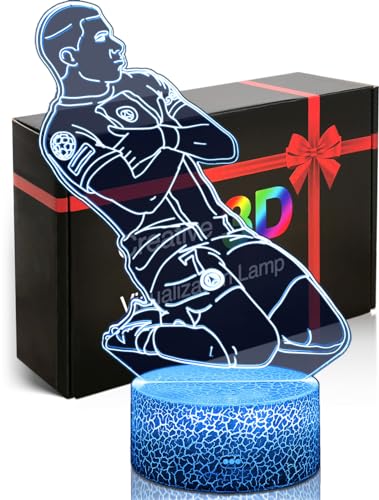 DAHEYMA Fotbollsspelare målfirande 3D-lampillusion, knäböjande med korslagda armar, 16 färger med fjärrkontroll Dimbar nattlampa, nr 7 fransk signaturrörelser Dekorationer Stämningsbelysning