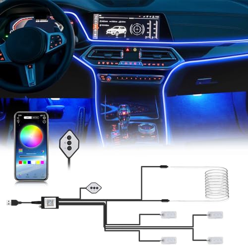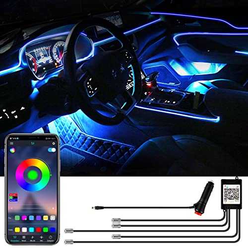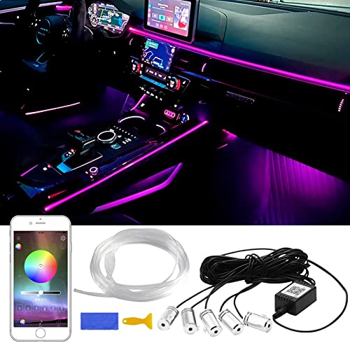 Bil LED interiörremsa med ljus, 5 i 1 16 miljoner färgeri 236 med 238 tum fiberoptik, flerfärgad RGB ljud aktiv bil stämningsbelysning kit – trådlös Bluetooth APP-kontroll