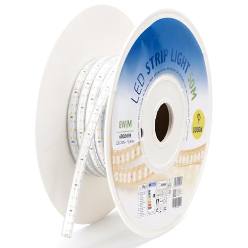 Blendend Gul LED-remsa 50 m 10 mm, integrerad krets, idealisk för dekoration, stämningsbelysning och kreativa projekt.