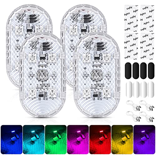 Aicharynic Bil LED-innerbelysning, 4 stycken magnetisk LED-beröringsljus RGB 7 färger justerbar interiör stämningsbelysning för bil uppladdningsbar mobil USB touch biltillbehör interiör bil nattlampa